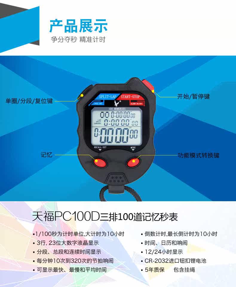 天福 Электронный универсальный секундомер для тренировок для спортзала, таймер