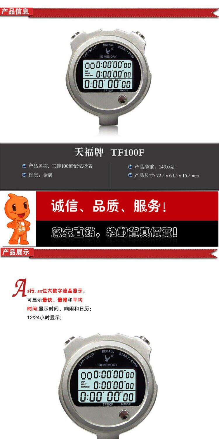 Продавец:天福牌计时器秒表