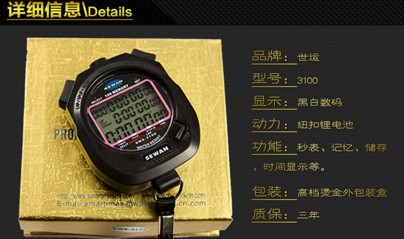 Специальный сертификат: Цифровые кварцевые стада с измерением сегментированных точек/сегментированной области, обратного отсчета времени, дисплея времени и функции шага.