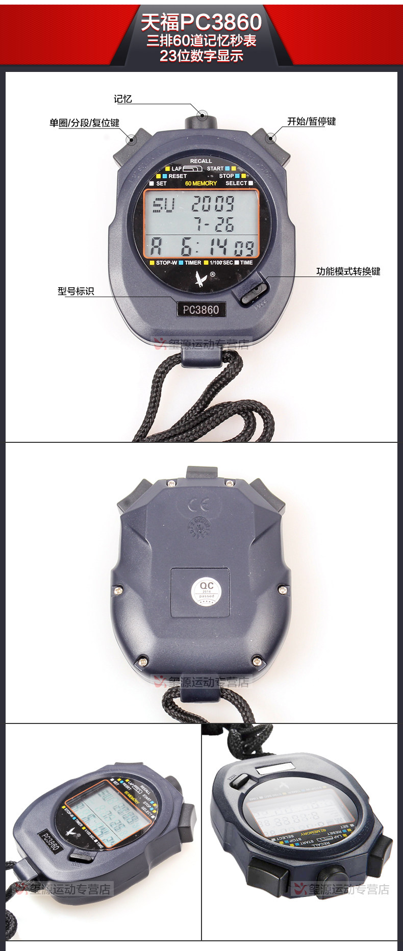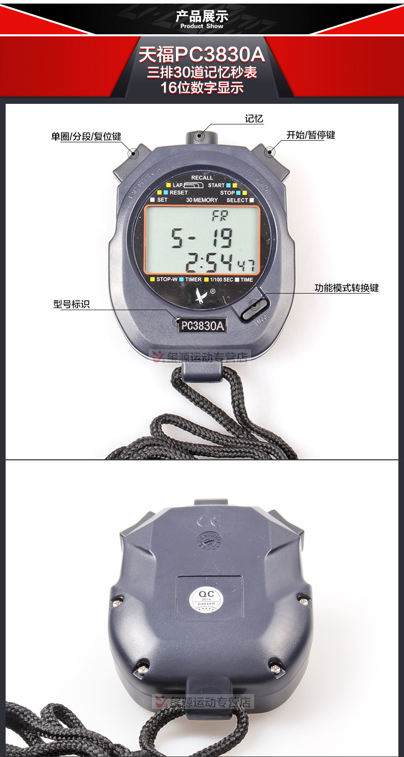 Подлинный Tianfu PC3830A Три ряда из 30 влажных часов Электронные беговые контрметра Многофункциональный таймер Бесплатная доставка