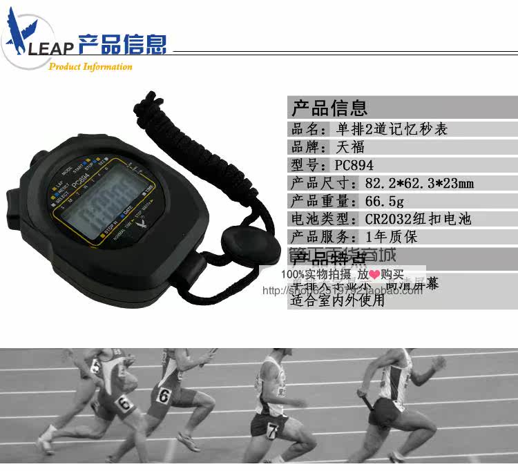 Секундомер Tianfu PC894, однорядный, 2-канальный, электронный секундомер, таймер, спортивный таймер, секундомер, хронограф