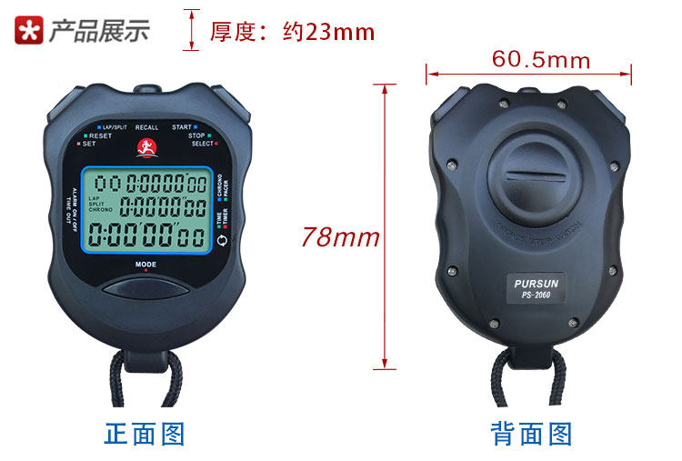 Подлинный день преследования PS-533/2060 Три ряда показывают 30/60 Timer движения памяти Time Time Time