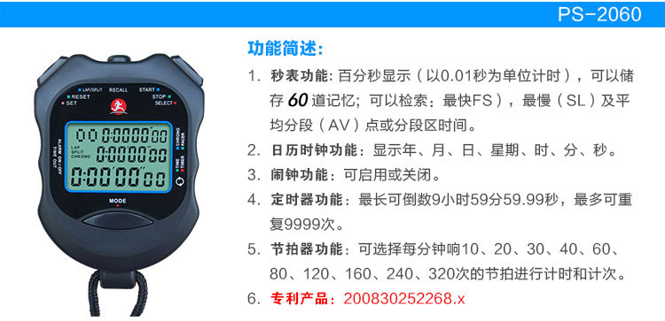 ● Функция каменных часов: устройство секунды может быть единицами за один процент (1/100) секунд, а измерение столько же, сколько