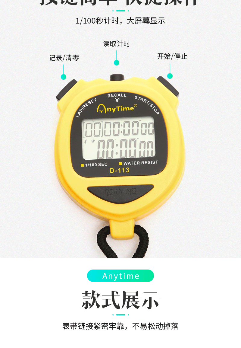 Двухрядный универсальный секундомер, ремешок для часов, водонепроницаемый термометр, таймер