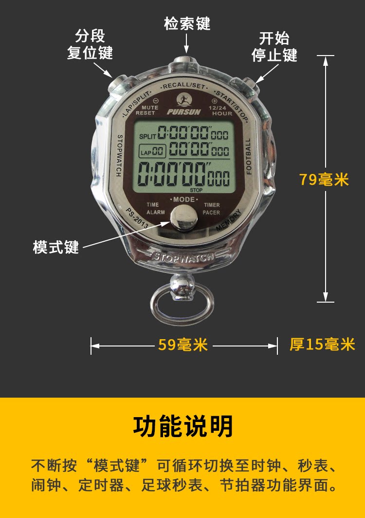 | Цвет: | Тысячи минут второго металлического секундома PS-2013, Тысячи секунд для ночного света перфуза PS-1000, Тысячи сплит-часов PS-1006 |