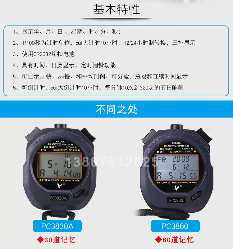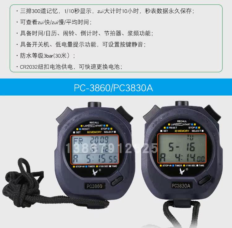 天福 PC3860 Три ряда из 60 секунд смотрят водонепроницаемый таймер PC3830A.