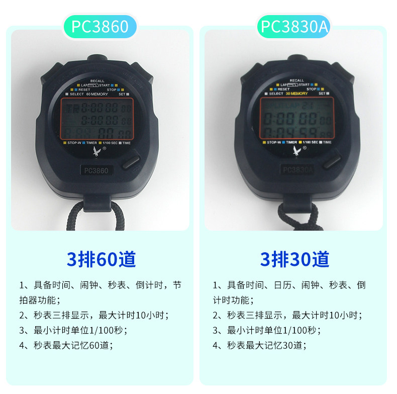 - Три ряда из 60 (черная модель YS-860) секундомер