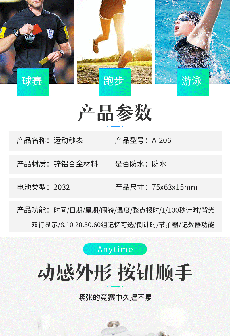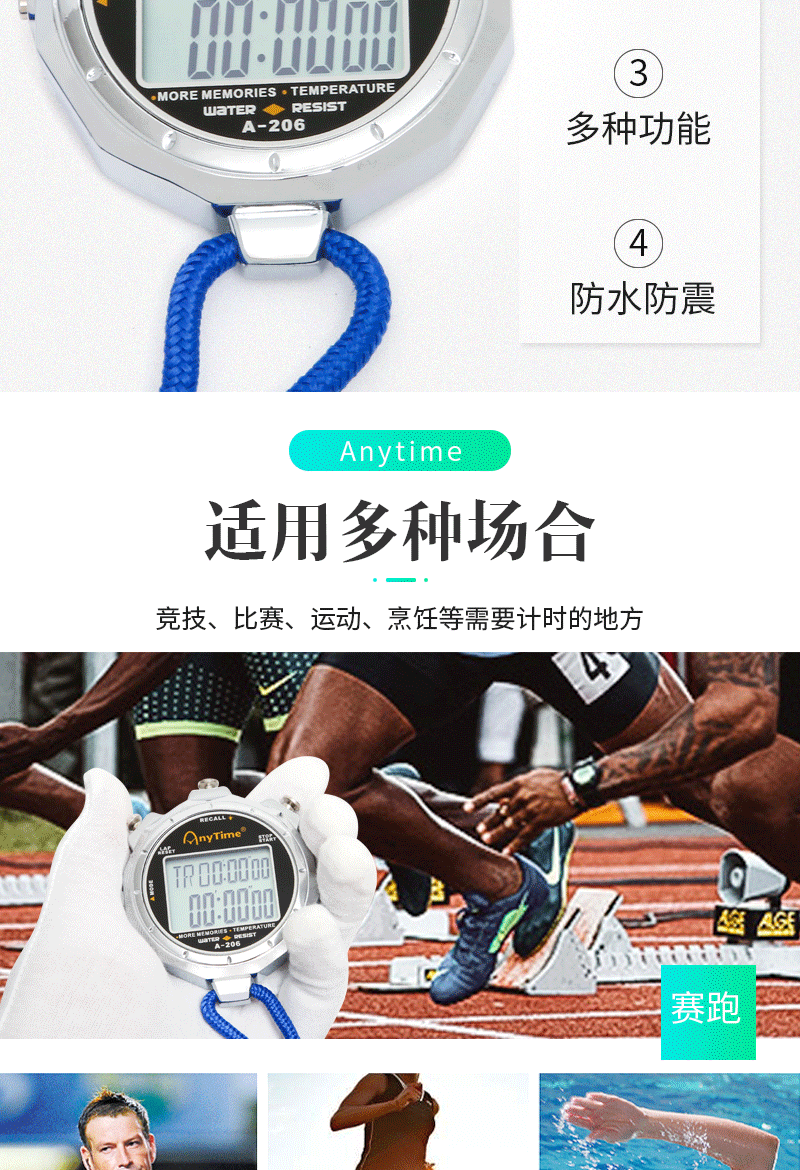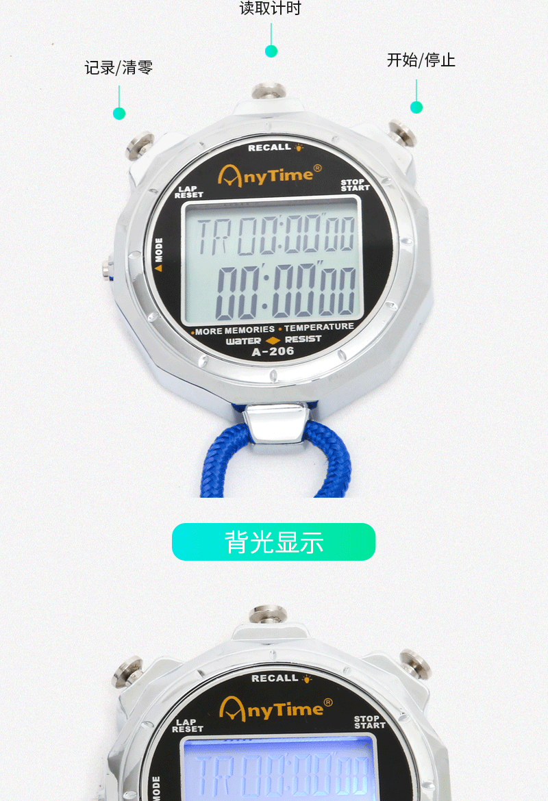 Металлический водонепроницаемый электронный секундомер, светящийся спортивный термометр, таймер