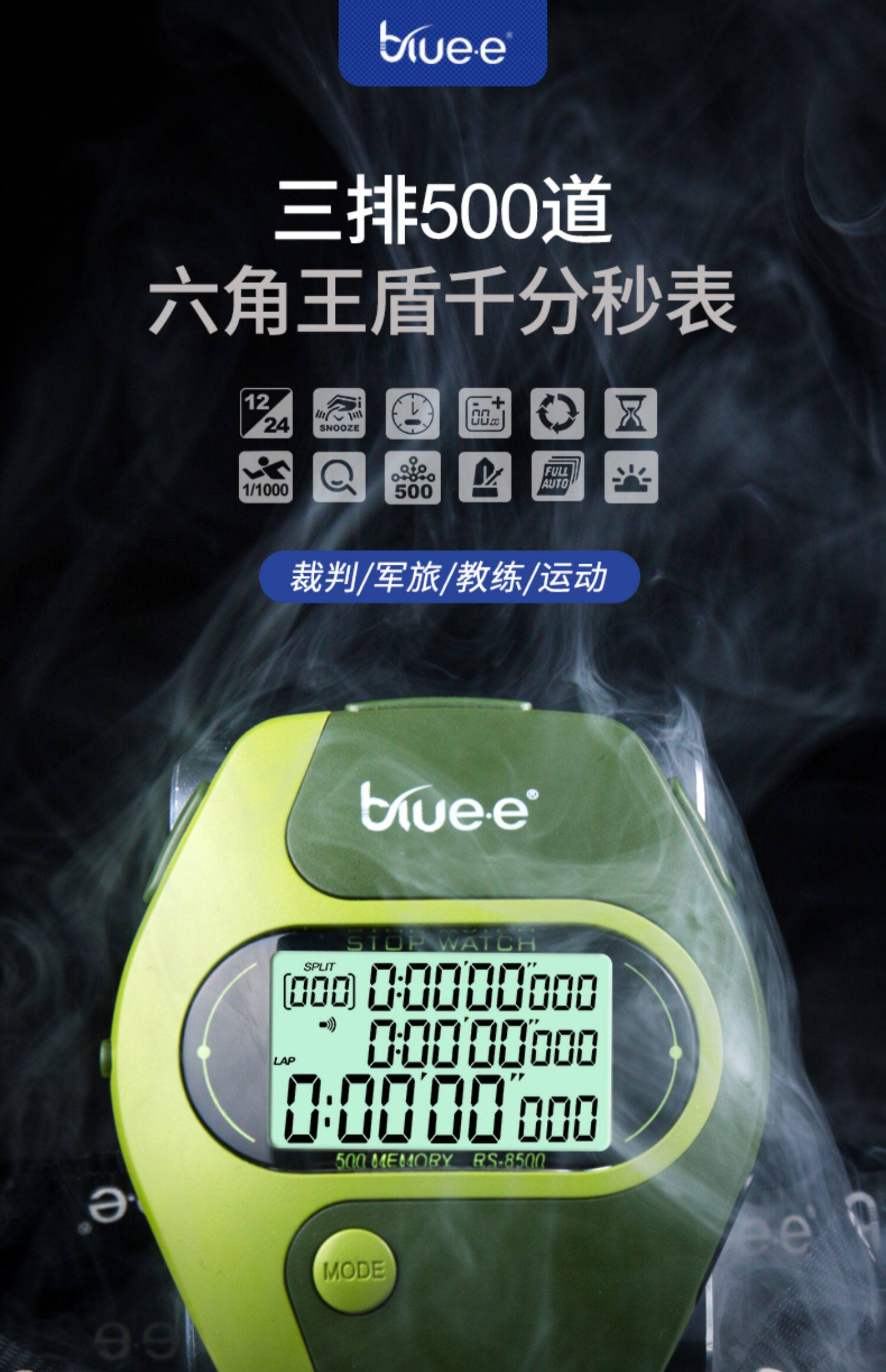 Bluee тысяча -второй поверхностный хронограф -рефери -тренер спортивный цикл подсчет хронографа 500/0815