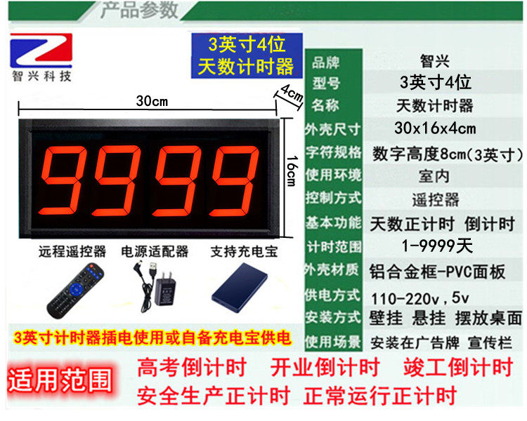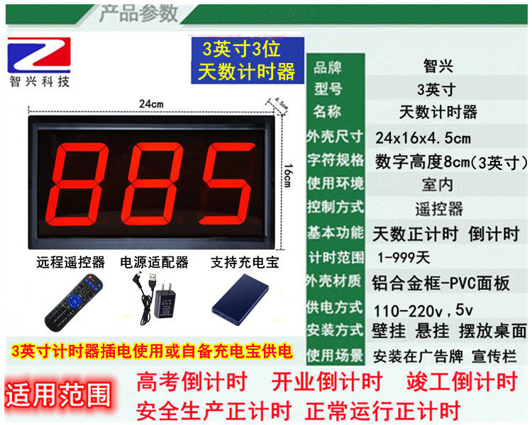 - Zhixing 3 -Inch 3 -бит красной буквы 999 дней, чтобы отсчет времени