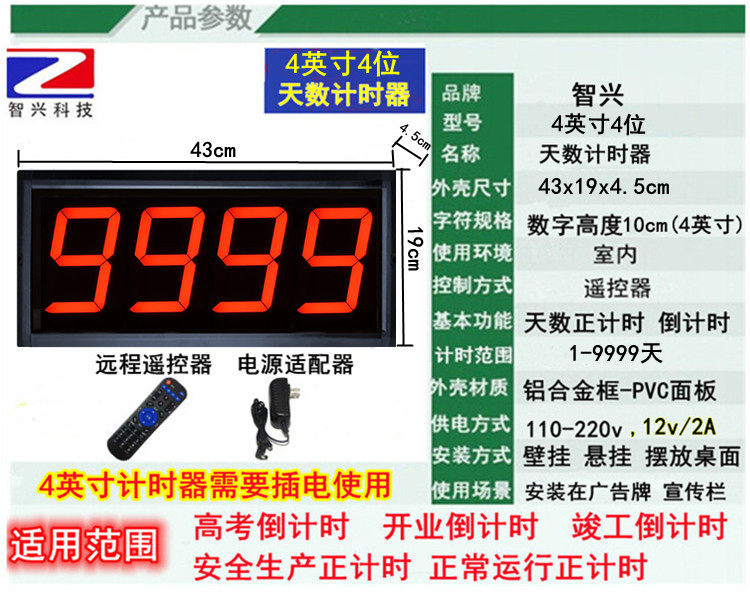 - Zhixing 4 -Inch 4 -бит красный текст 9999 дней перевертанного времени