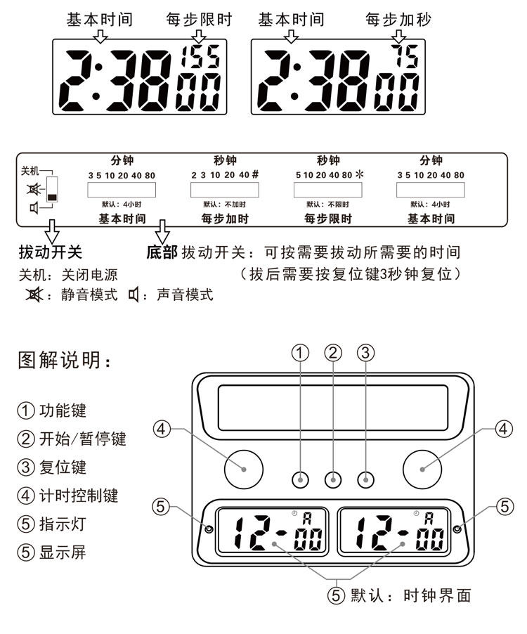 PS-383 Шахматный Go Международный шахматный шахматный таймер плюс секунды, чтобы упаковать