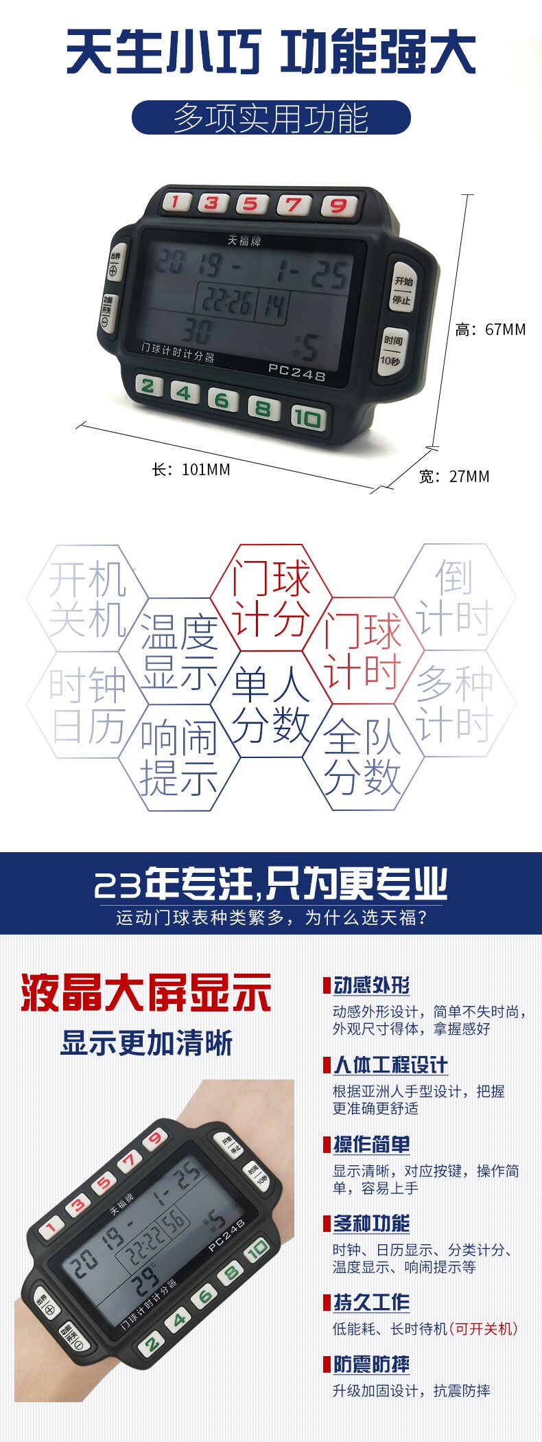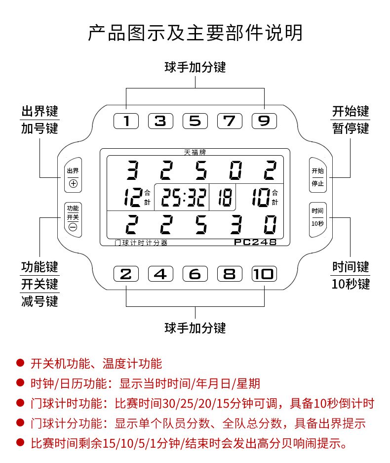 Выберите -up sign pc248 Handbelt Multi -Function Scoring Time Out -of -box Display 10 секунд, чтобы забить таблицу