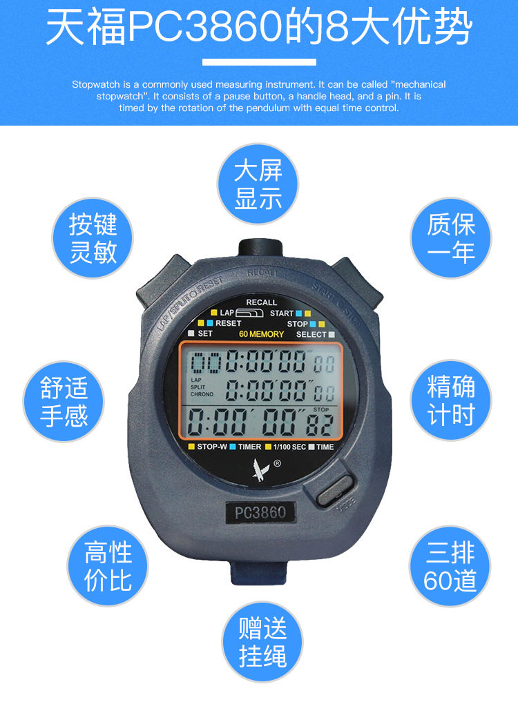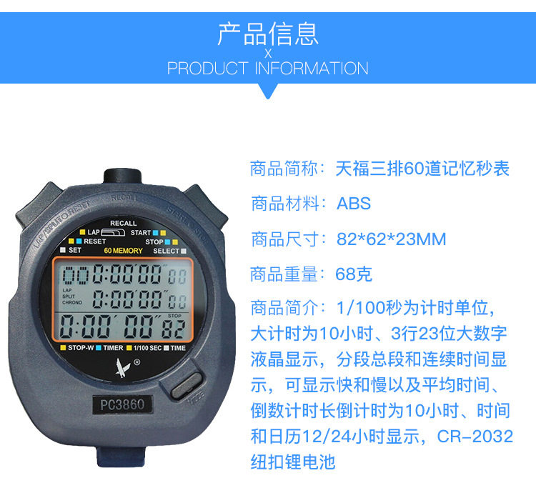 天福 PC3860 Три -рост 60 Электронный код часы работы с фитнес -спортивным рефери -рефери учитель спорта