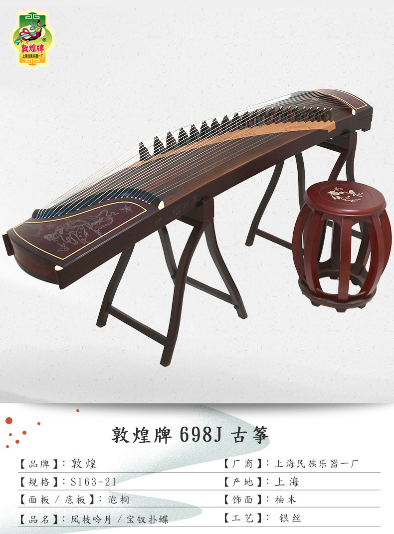 敦煌 Guzheng 698J Broad -Leaked Rolling Wooden Screeure Sapphire играет на фабрике национального музыкального инструмента Piano Shanghai