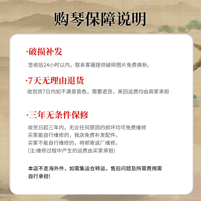 Внимание, кайт-друзья现在 购买 款 古筝江 浙 沪皖 、 北京 、 天津 、 广东 、 全 境 包 快递 发货 (默认 天天 快递 和 一 快递) 福建 河北 、 河南 、 湖北 湖南 、 江西 陕西 、 重庆 、 、 湖北 、 、 、 陕西 重庆 、 、 Юньнан, Лиаонинг, Джилин, Гуанси, Хейлонгцзян, Ченгду, Хайнан, Гуйчжоу, Цинхай, Иинчуань и другие места по умолчанию на поезде Китай Железнодорожный Экспресс или Логистика Хуаю и специальная логистика (логистика должна быть поднята). логистика и нужно упомянуть себя.Если логистика некоторых областей не может быть достигнута напрямую, поскольку вы добровольно увеличиваете плату за перевод, если вы не добавите плату за перевод, вы можете добраться только за свою провинцию и не можете добраться до своего округа и города. Вы можете рассмотреть в соответствии с Ситуация и свяжитесь с обслуживанием клиентов, чтобы составить плату за перевод!Районы Гонконга, Макао и Тайваня не находятся в рамках транспортировки упаковки. Цинуу в этих областях, пожалуйста, свяжитесь с обслуживанием клиентов, чтобы проконсультироваться с фрахтовыми перевозками.Если у вас есть другие особые требования, пожалуйста, свяжитесь со службой поддержки клиентов вовремя для консультации.
