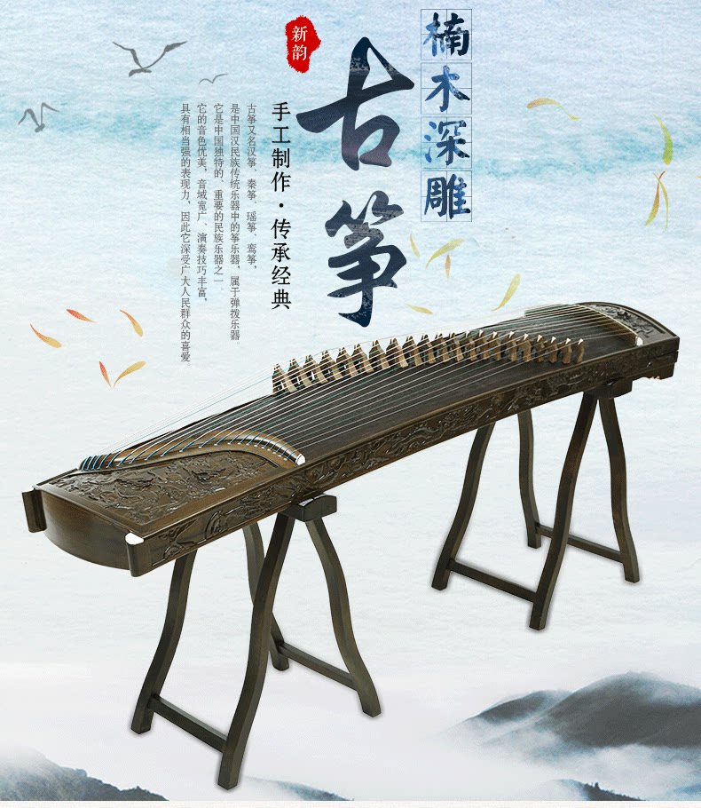 新韵 Guzheng Yangzhou Nanmu Deep Carging Kowloon Professional Grade Производительность производительность Взрослая ученика