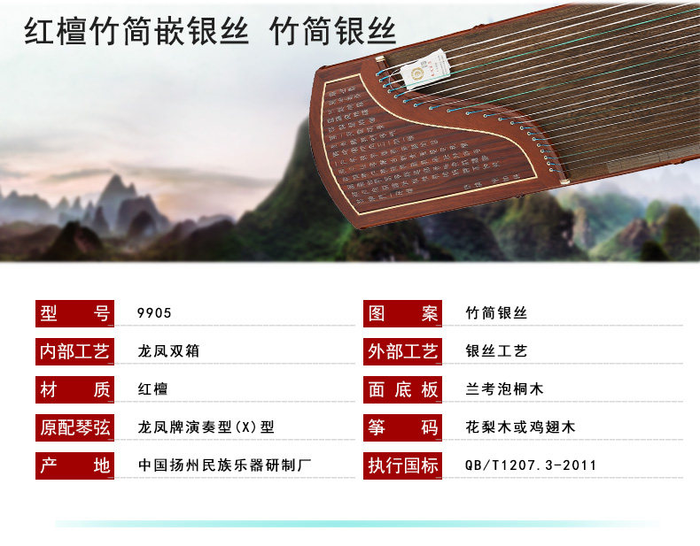 龙凤 Бренд Гученг Производитель прямой продажи 9905 серия Tianquan Red Sandalwood Bamboo Упрощенное серебряное шелковое Ziration