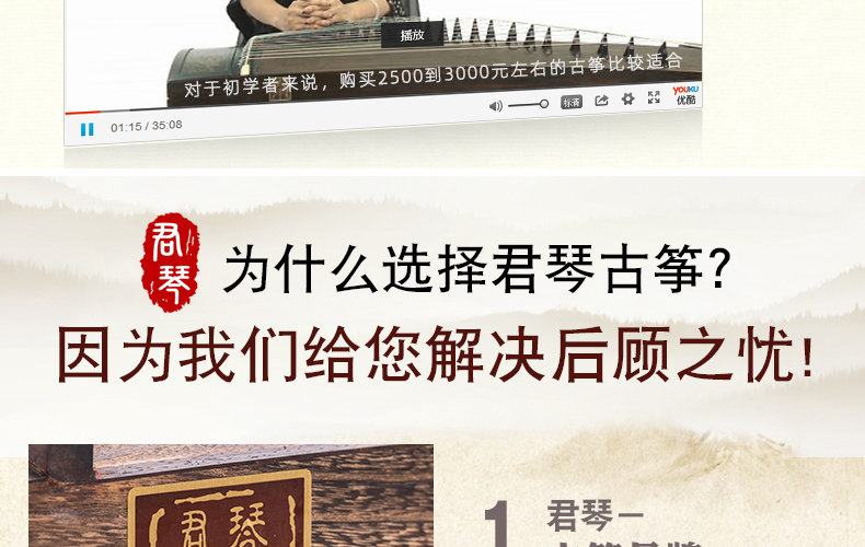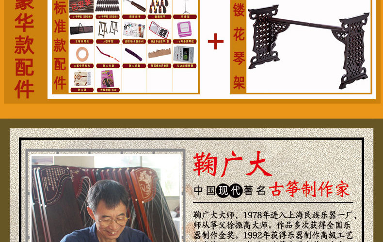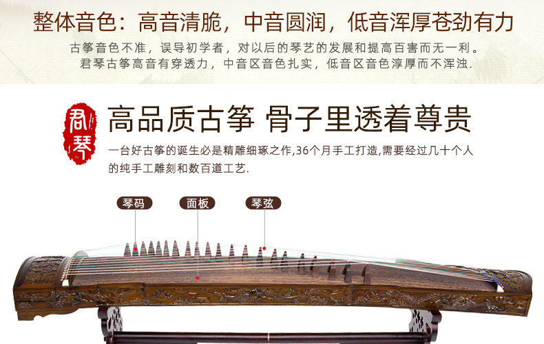 Старший спектакль Junqin Guzheng Golden Silk Nanmu Solid Zither Junior First School
