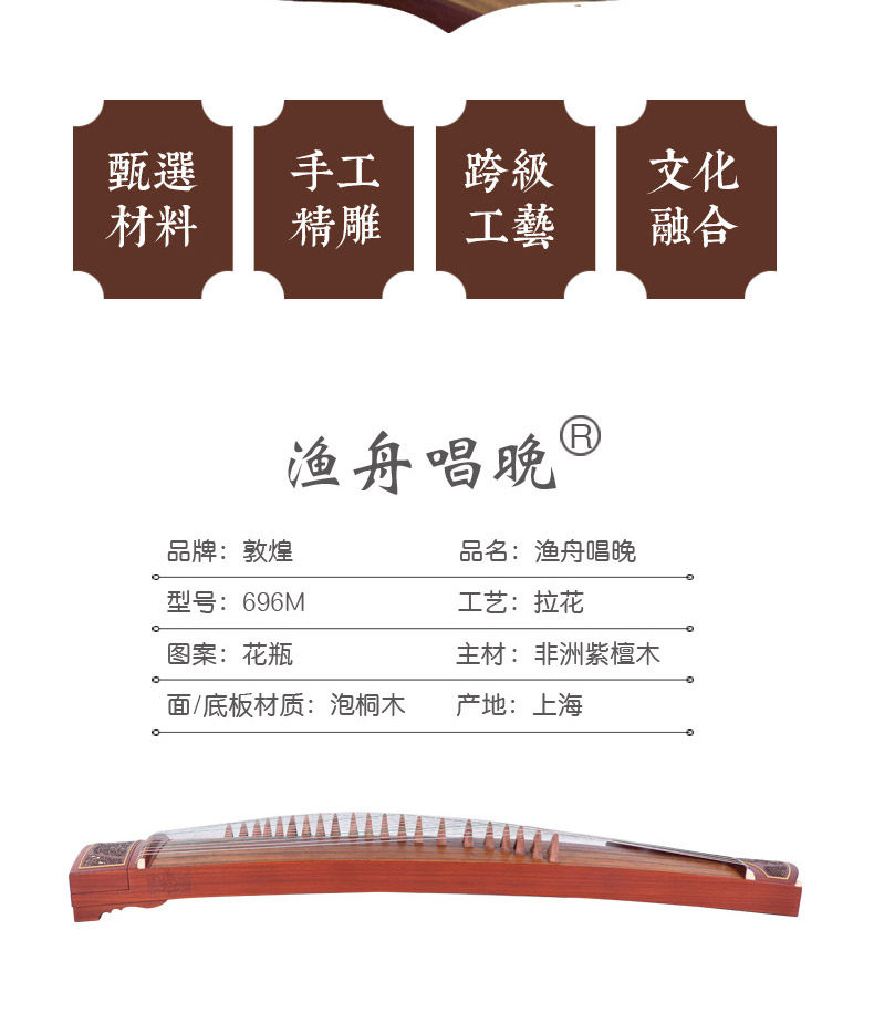 敦煌 Бренд сплошной древесина Zither 696M Рыбацкая лодка пение вечерняя ваза/Tingzhuang [Dunhuang Musical Instrument Store]