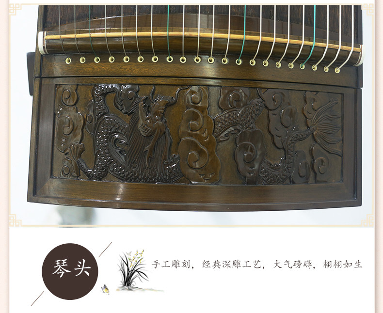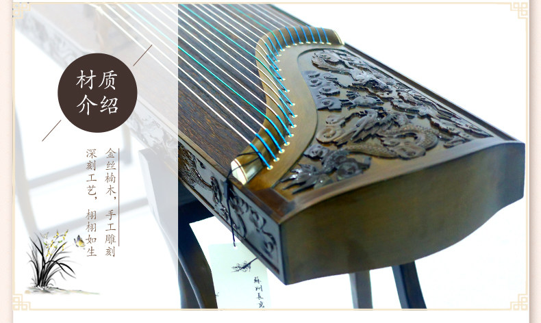 Золотой шелк Старый Нанму Глубокий Резьющий Летающий Дракон берет Юн Гучхенг, чтобы сыграть музыкальный инструмент с ногтевой лентой и другими аксессуарами из Гучэнга