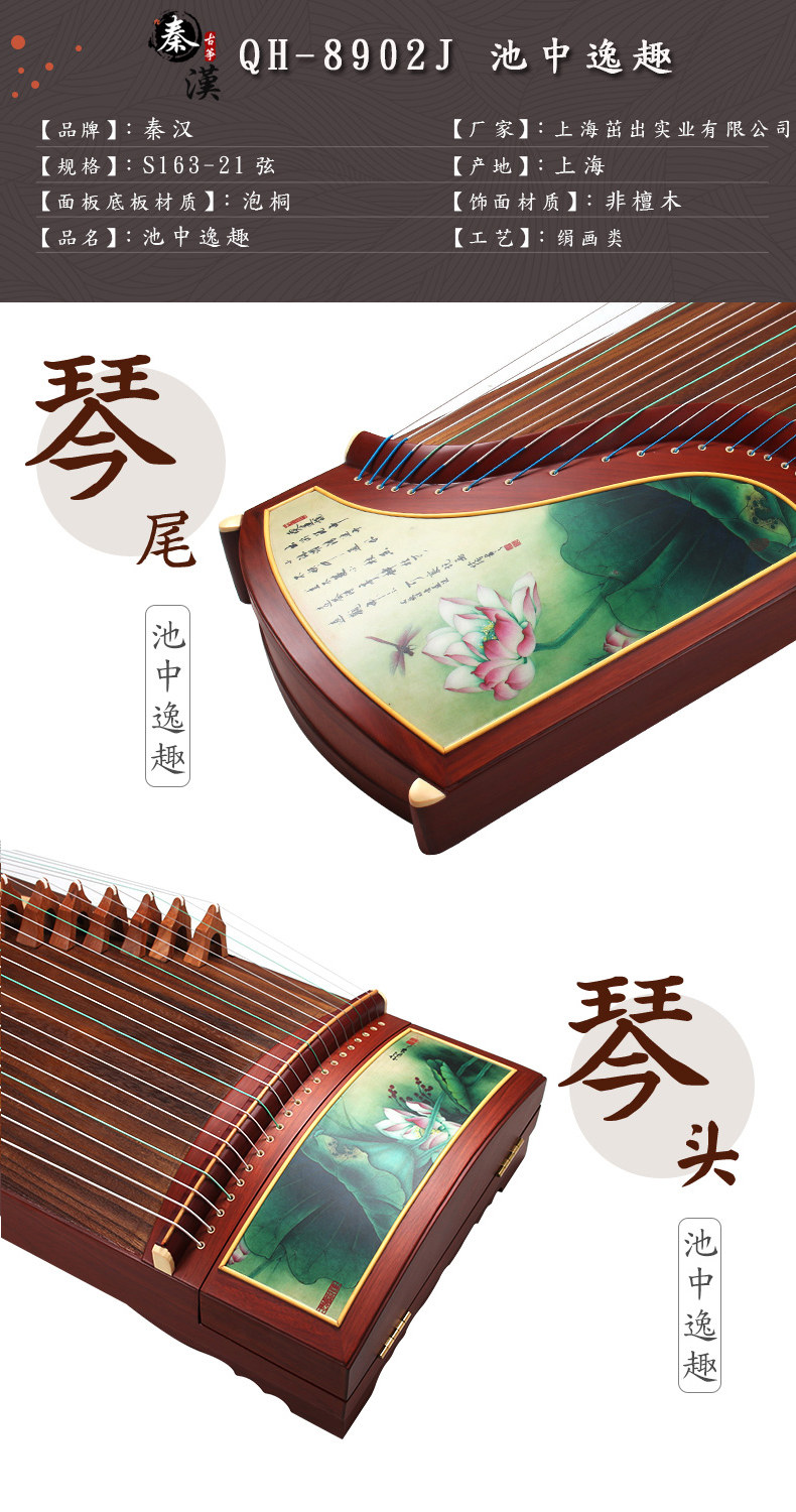 秦汉 Guzheng QH-8902J Pool Yitu Silk Painting Guzheng Performance of Guzheng
