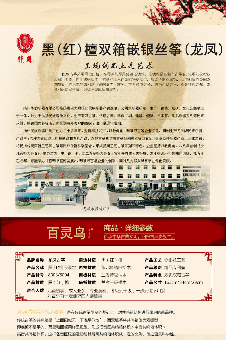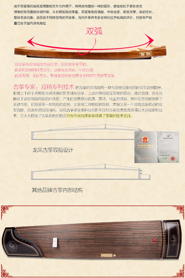 Enterprise Adurine Dragon и Phoenix Guzheng 8803 Rythalin 8804 Двойная двойная коробка с двойной дугой Red Sandald