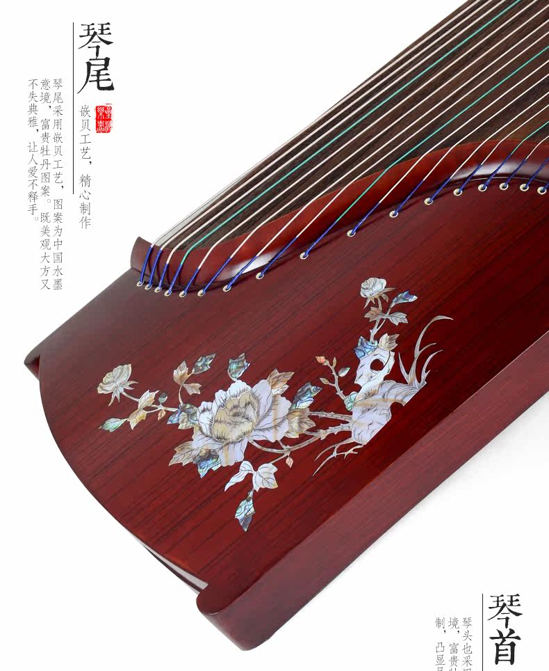 Имитация красного дерева Гучжэн Профессиональный взрослый Zither Zither Rich Peony Pattern Guzheng Professional Exquisite Test 8811t