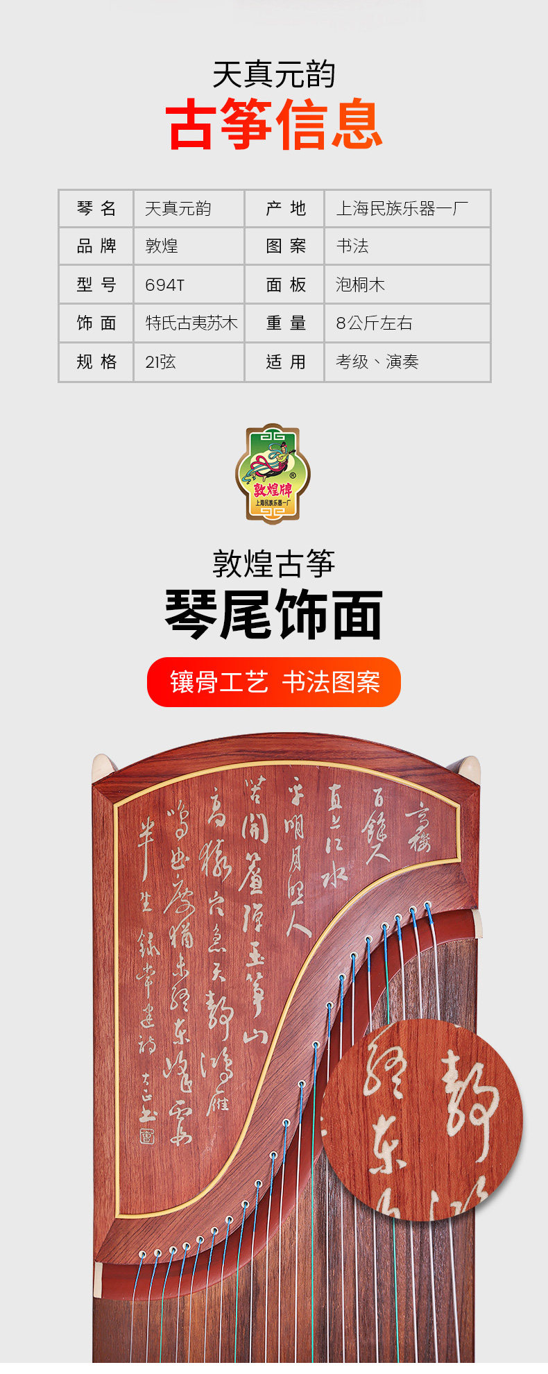 敦煌 Guzheng 694t каллиграфия узоры Tiantu Yuan Yunte's Guyi Sumu Dunhuang Бренд Гучжэн Национальный музыкальный инструмент