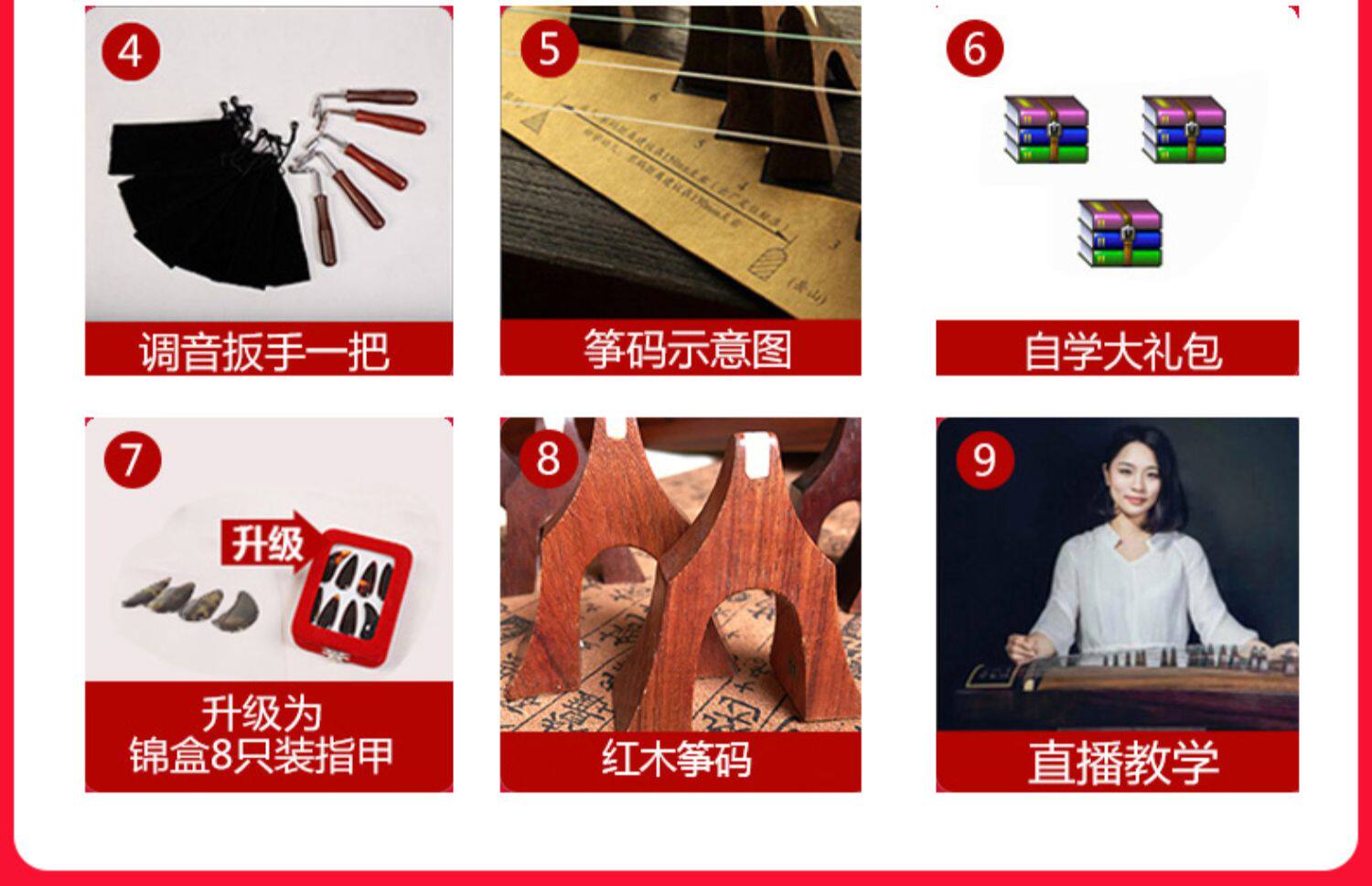 - Стандартный "Guzheng+Wrench+Piano Frame+Code+Code+Code+Code+Nails+лента" Новичок