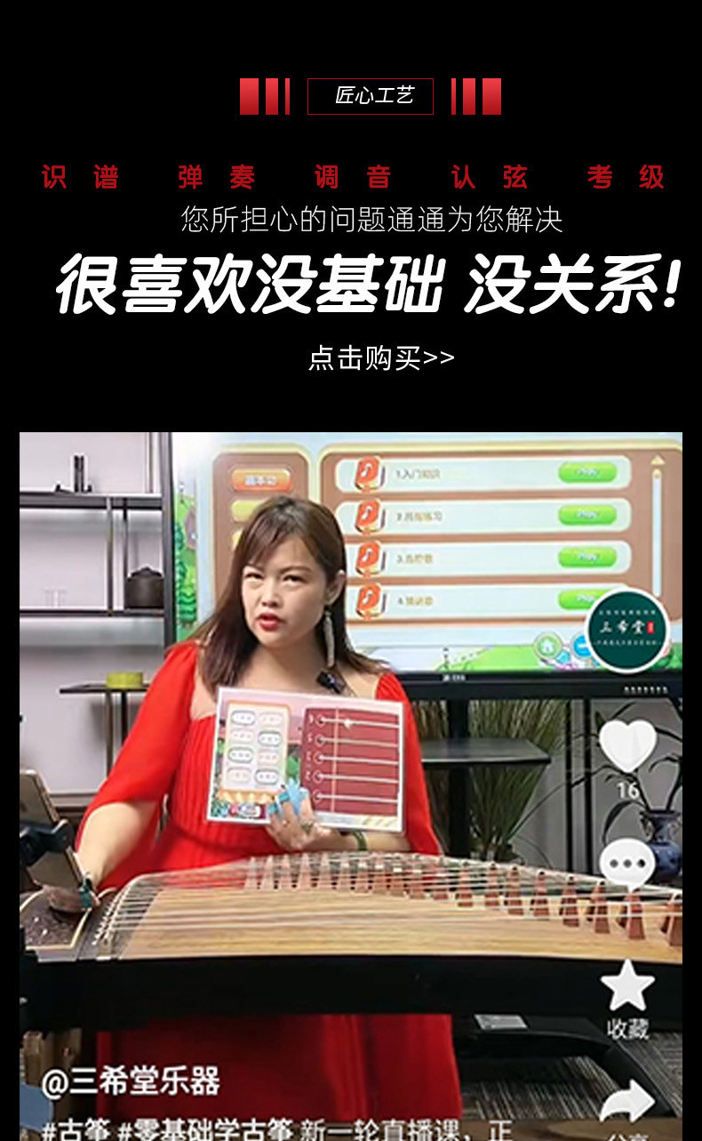 三希堂 Guzheng Child Beginters Beginters Оценка экзамена Ebony Solid Wood Официальный флагманский магазин Direct Guzheng