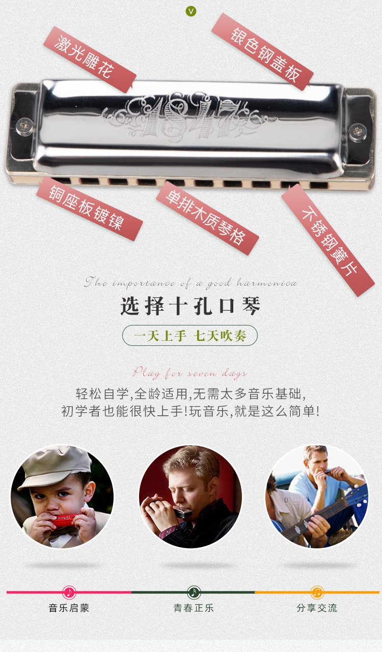 Германская Сейдель 1847 Классический тростник из нержавеющей стали 10 -отверстия Брюс