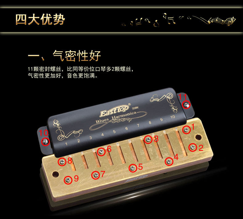 Easttop Oriental Ding T008k Десять лунок плюс пианино 10 -отверстие C -Раша Blues начальная школа Paddy Harmonica Harmonica