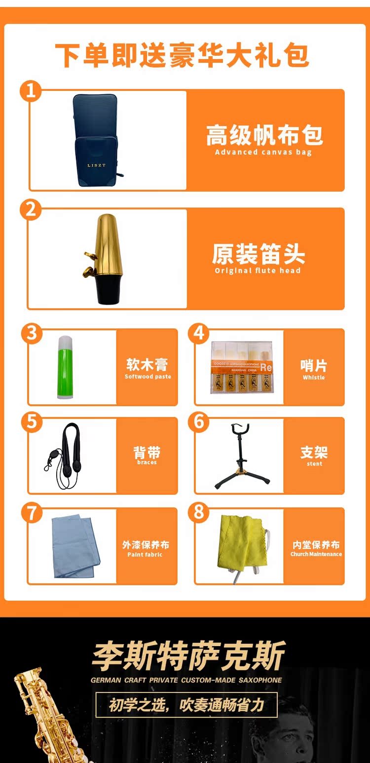 Подлинная Германия Liszt Professional Performance E -Ten Menyin Saxor Vacation для взрослых начинающих музыкальный инструмент