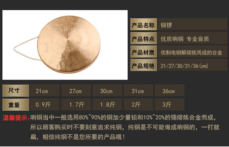 西子 Little Gong Professional Performance Performance Gong and Horse Gongs Бронзовый инструмент стучит на производитель малого гонга Gong Gong