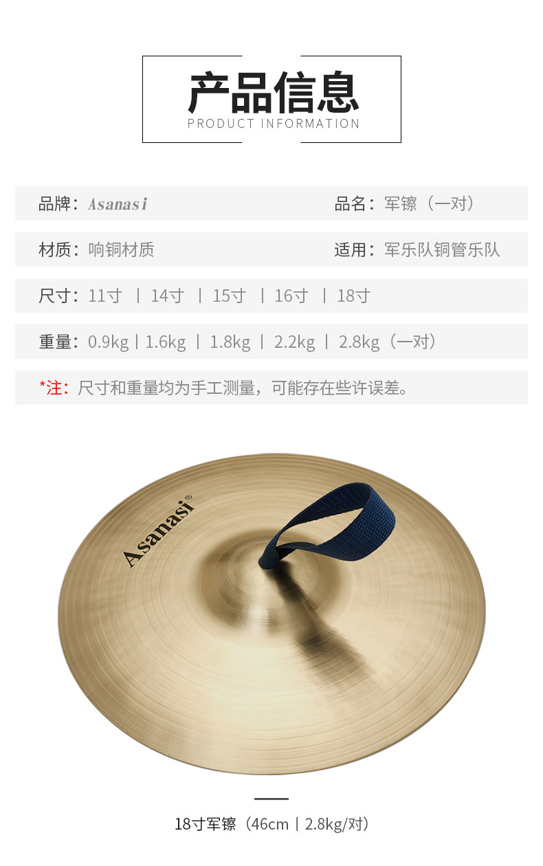 Маленькая армия 铜 Профессиональная медная большая армия 镲 12 -14 -дюймовая 15 -дюймовая 16 -дюймовая 18 -дюймовая большая армия 镲 медь