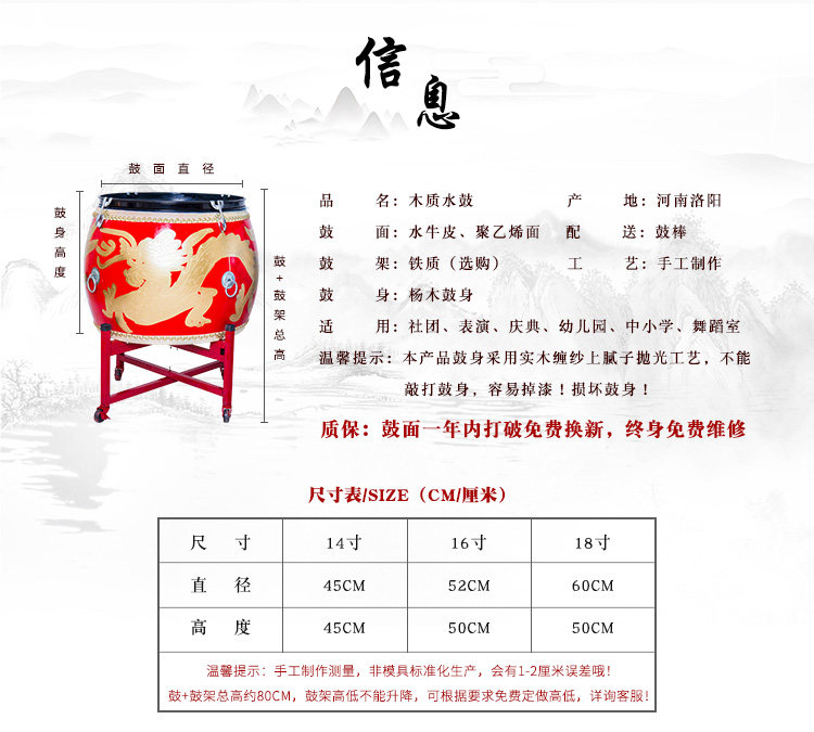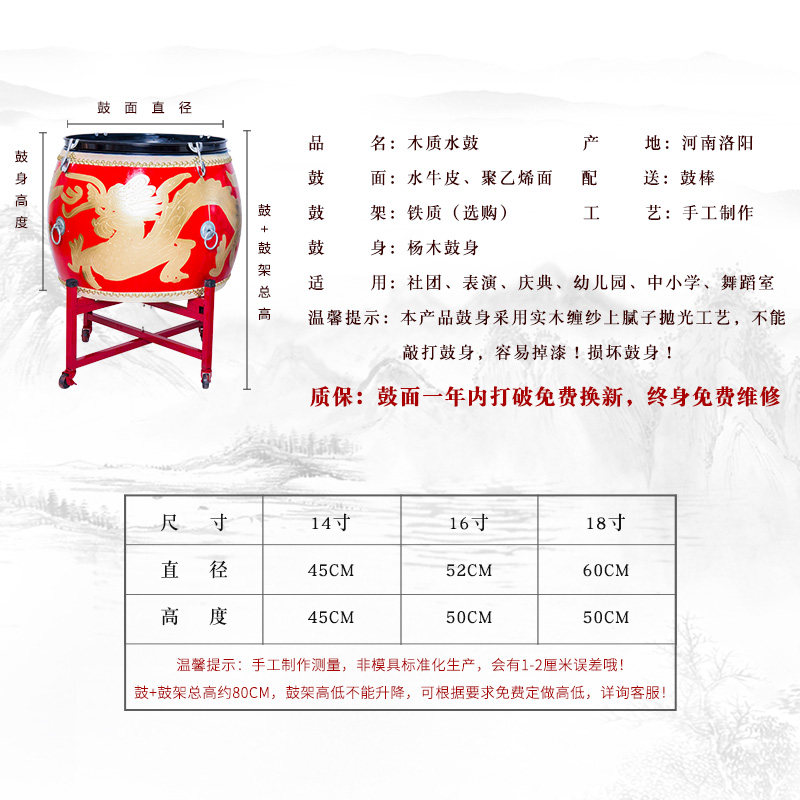 - 14 -INCH Red Golden Dragon Water Drum+Red Brumber рама барабана
