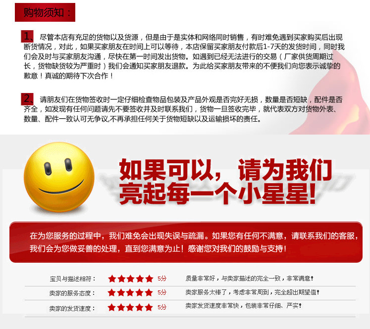 Большое спасибо за покупку наших продуктов.Мы будем обслуживать каждого клиента искренне!Для собственного качества продукции, клиентов, которым необходимо возвращать продукты, должны нести покупатели и друзья.Отступление продукта, у которого есть проблемы с качеством, должен содержаться продавцом.Заменяемый продукт должен гарантировать, что никто не будет поврежден или другие случайные факторы повреждены. В то же время внешний вид не следует носить. Коробка упаковки предметов и его вложения должны быть завершены.
