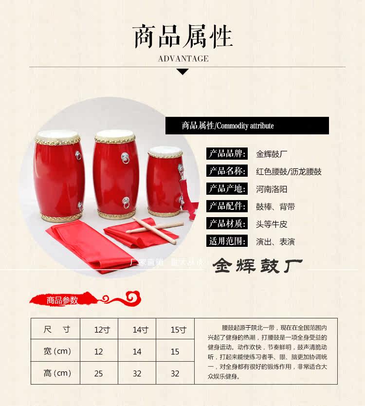 - 12 -Данша талия барабана+барабанная палка+полотенце+ремешок+красный шелк