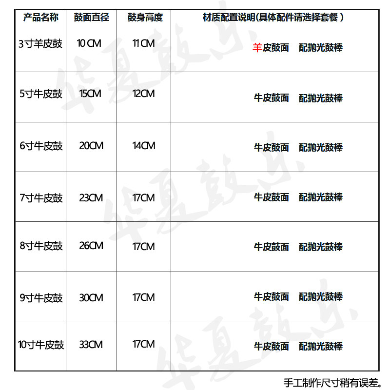 - Корпус барабана с твердым деревом, кожаная барабанная поверхность, обеспечение качества!