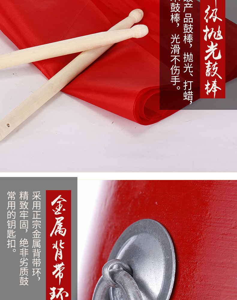 - 9см чистая красная талия барабана+барабанная палка+ремень+жалость+длинный шелк