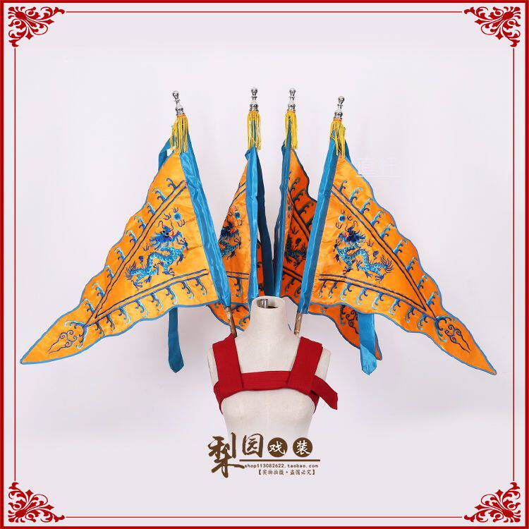 Opera Dance Peking Opera Мужчина полагается на флаги и барабаны, чтобы нести флаг вышивания флага Dragon Flag с двойной вышивкой.