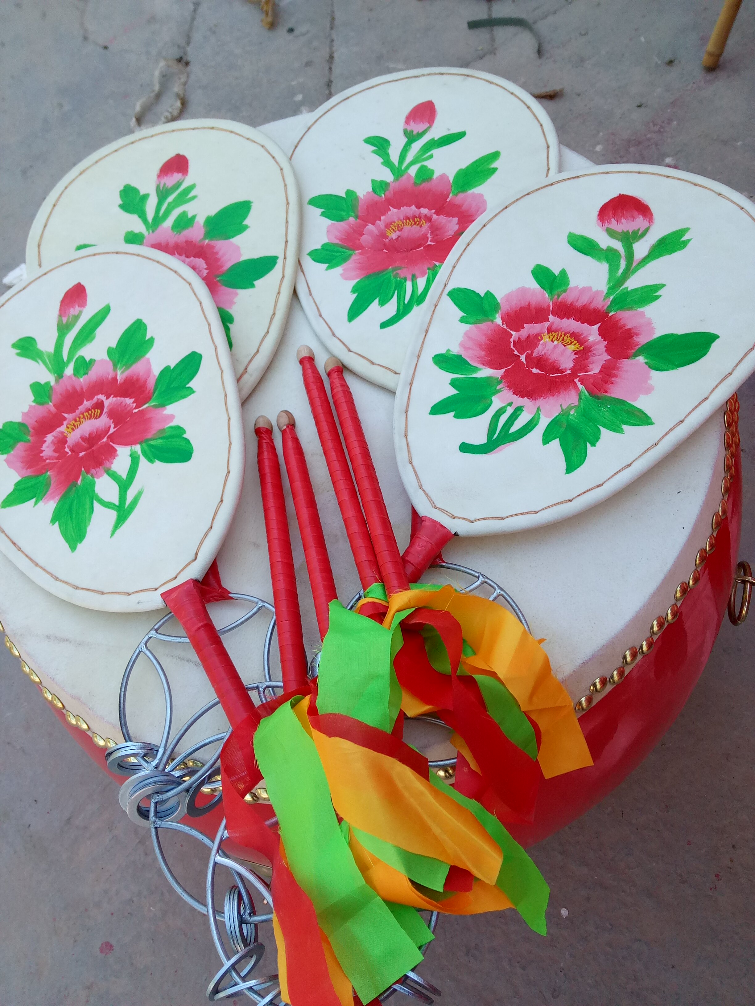 Пекин Уэст Тайпинг барабан, фанатский барабан.Нарисовал барабан вентилятора.Барабан танца, отправьте барабанные палочки