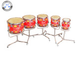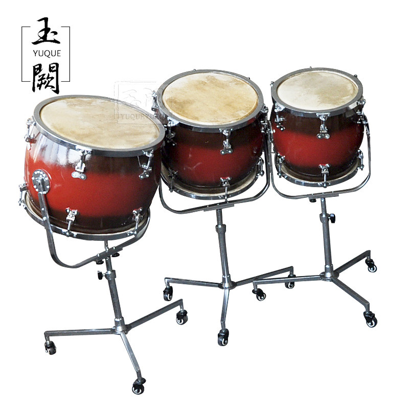 На основе реформы церковных барабанов и талии, обычно используемых в народе.Барабаны состоят из пяти до шести, от больших до маленьких, от баса до высоких барабанов.Обе стороны барабана оснащены настраивающим оборудованием.Барабан фиксируется на специальной железной раме.Настройка может достигать диапазона от четырех градусов до пяти градусов.Два разных звука могут быть излучены с обеих сторон барабана.Из -за изменений в различных высотах, звуках и приоритете это может вызвать богатые звуковые эффекты в группе, хорошо выражая теплые и ликоватые эмоции, и в основном используются для крупных инструментальных ансамблей и барабанной музыки.