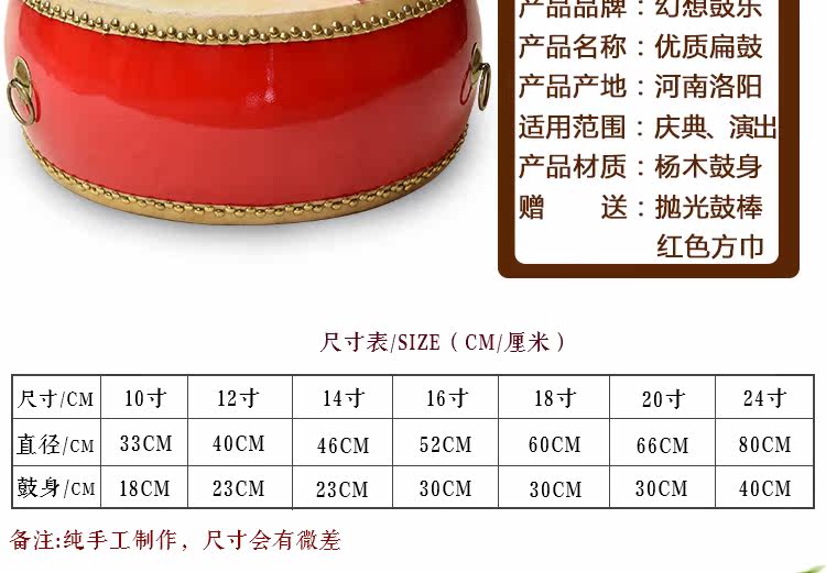 10 -inch/12 -inch/14 -inch/16 -inch // 18 -inch Li Dragon Drum Drum Brum Red Drum Drum Brum