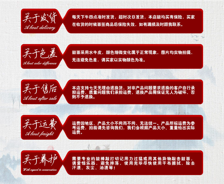 Наша фабрика расположена в востоке от Луояна, древней столицы Центральных равнин Автономный регион города широко высоко оценил пользователи.Эта фабрика славится своей барабанной кожей (кожи, овчарная кожа, барабанная кожа). сопровождать, и они рады сотрудничать с иностранными бизнесменами для экспорта в Юго -Восточной Азии и других местах.Вы также можете сделать различные спецификации барабанной кожи, барабанов и других продуктов в соответствии с потребностями пользователей.Наша фабрика будет использовать первую технологию, качество первого класса, идеальные услуги, разумные цены,