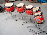 Пять звуковых барабанов состоит из пяти разных размеров и других барабанов.Высота барабана составляет от 29 до 33,3 см, диаметр верхнего рта составляет от 16,7 до 37 см, а диаметр нижнего рта составляет от 11,7 до 37 см.Каждый барабан имеет одинаковый диаметр и разные диаметры внутреннего диаметра, который может излучать два звука с разными высотами звука, поэтому у пяти барабанов есть десять звуков.Две стороны каждого барабана оснащены настройкой, а настройка звука может достигать четырех или пяти градусов, что может быть определена в соответствии с фактическими потребностями.Корпус барабана фиксируется на специальной полке барабана, который может быть поднят, а верхний конец барабанной рамы -“u&Rdquo; форма рамы, барабан помещается в полку, чтобы перевернуть для выбора высоты.