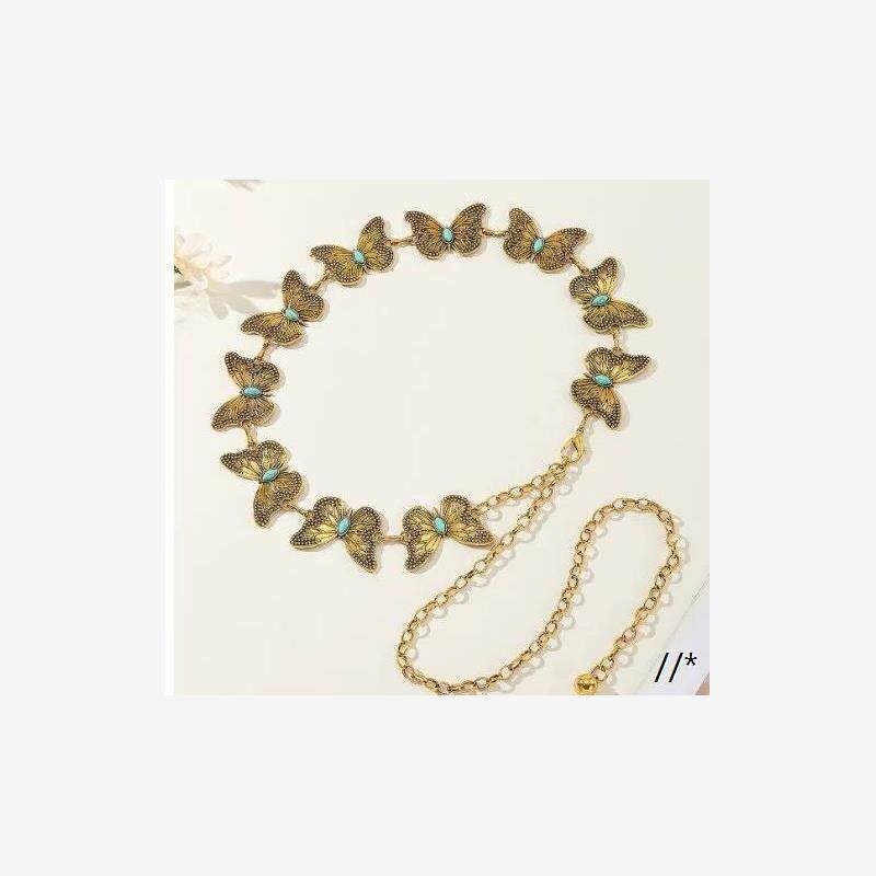 (Трансграничная торговля), ретро бирюзовая инкрустация камня, металлическая цепь, ремень, платье, европейский стиль, изысканный стиль