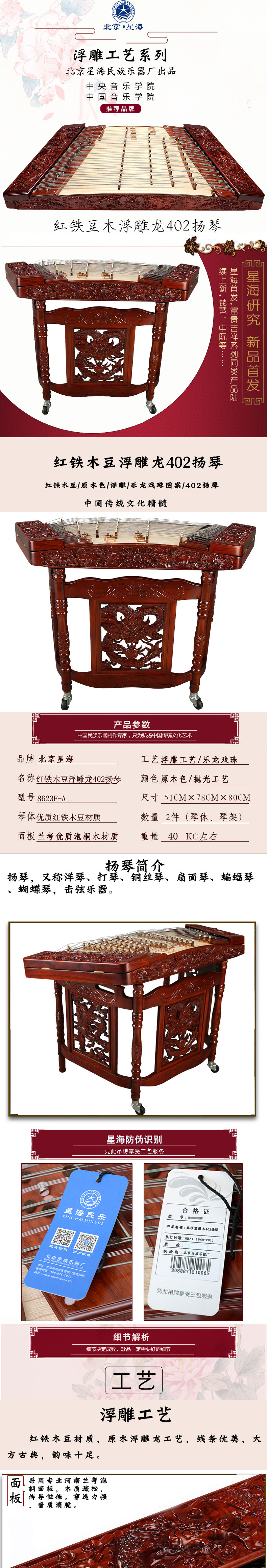 Red Iron Mu Dou Relief Dragon 402 Yangqin 8623f-A Пекин Синхайский музыкальный инструмент Профессиональный экзамен по выступлению