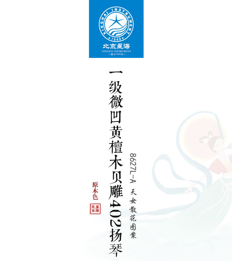 Синхай Янцин Музыкальный инструмент Первый класс Микровальный дерево 8627-A Пласы Элегантные 8627L-A Sky Girl Sancar Sculpture